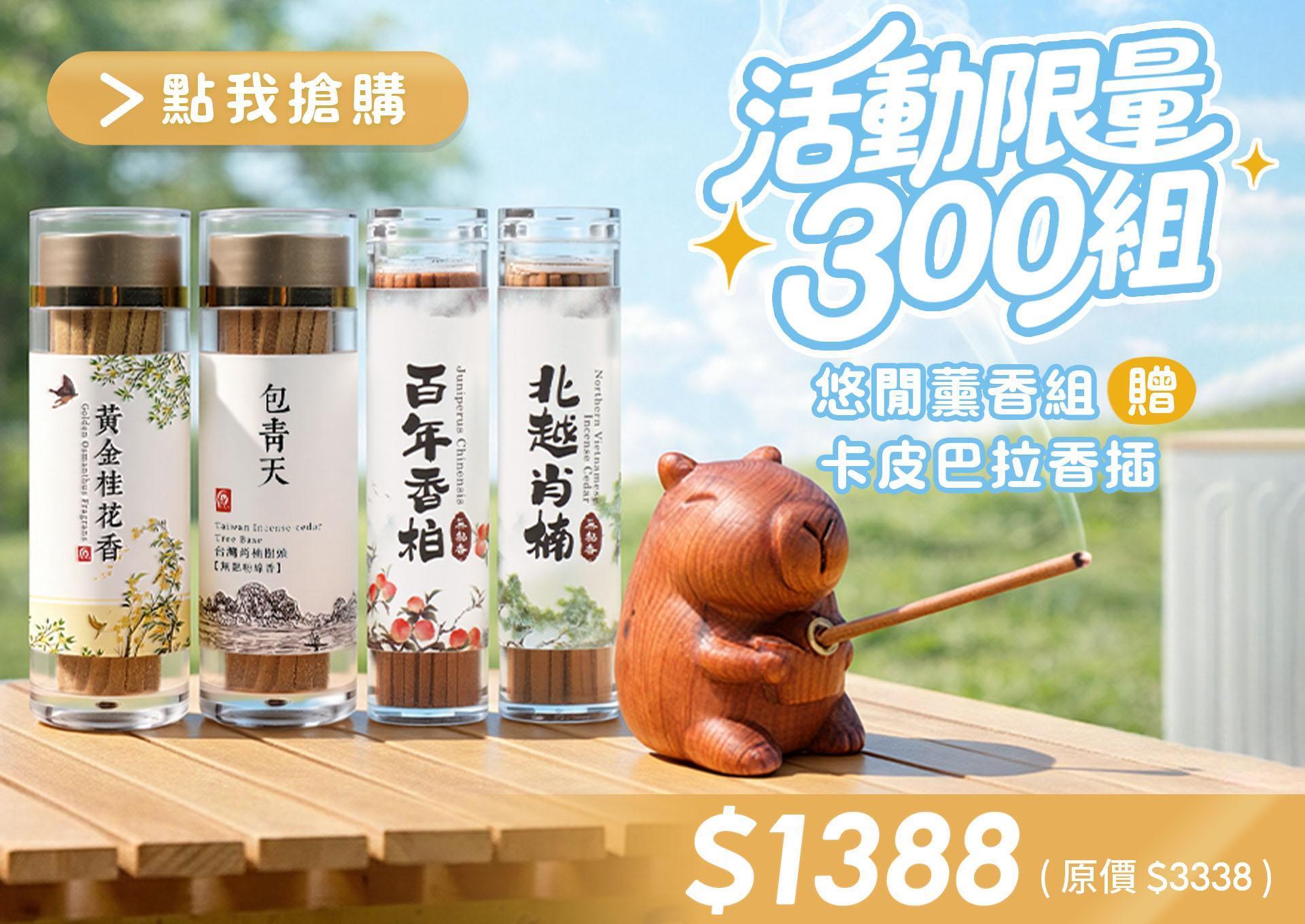 原木香【限量300組】卡皮巴拉香插 悠閒薰香組 水豚 百年香柏 龍柏 果香 Q版造型 套組 無黏香 桂花香 台灣肖楠樹頭 北越肖楠 桌面小物 擺設 原木公仔 藝品 避邪 淨化 磁場 守財 招財 好人緣