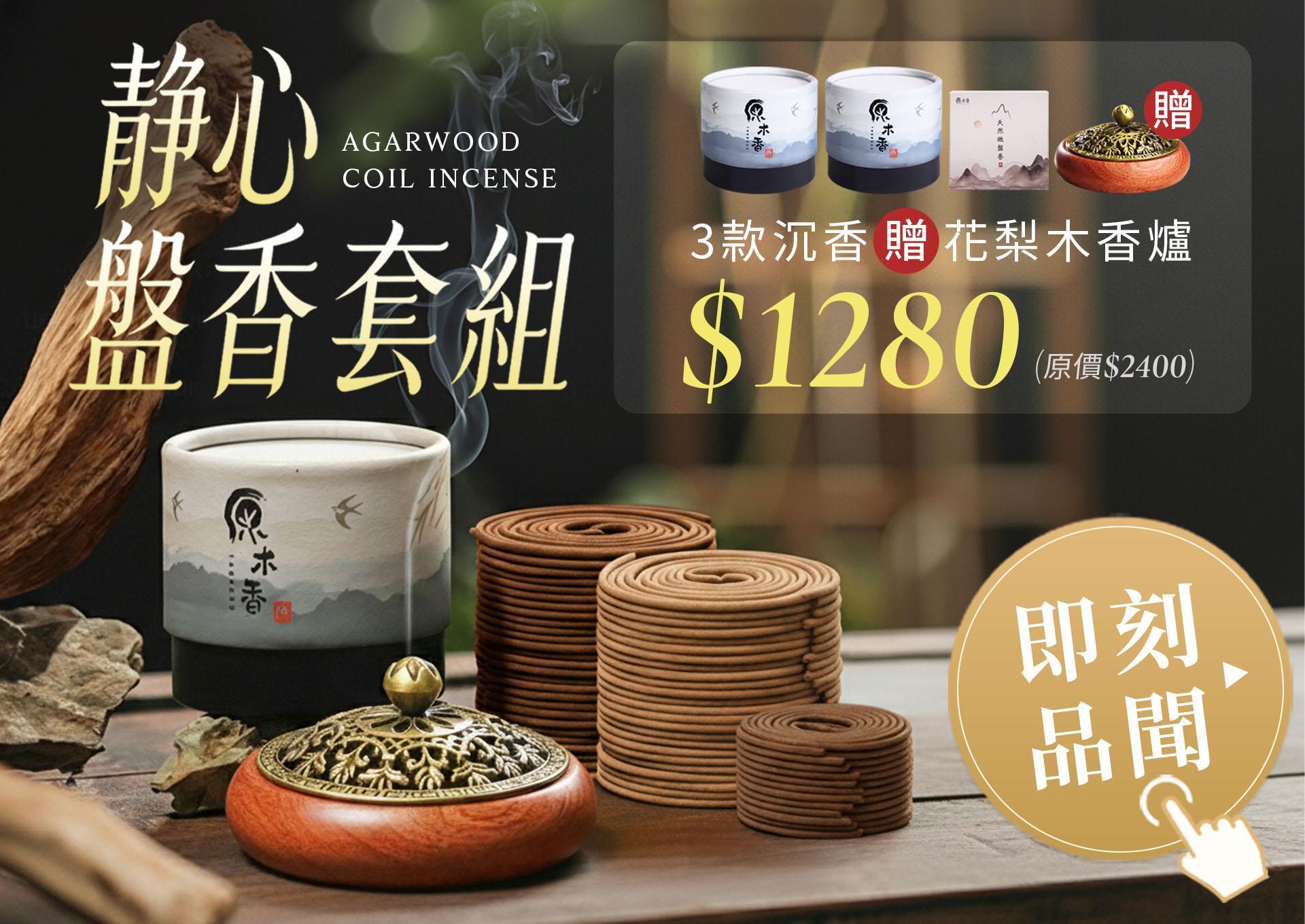 原木香 沉香・慢生活 靜心盤香套組 小盤香 微盤香 虎斑伊利安沉香(2.5小時) 安汶沉香(2小時) 甜土沉(4小時) 沉香 無助燃劑 無香精 不薰鼻 純天然 原木製作
