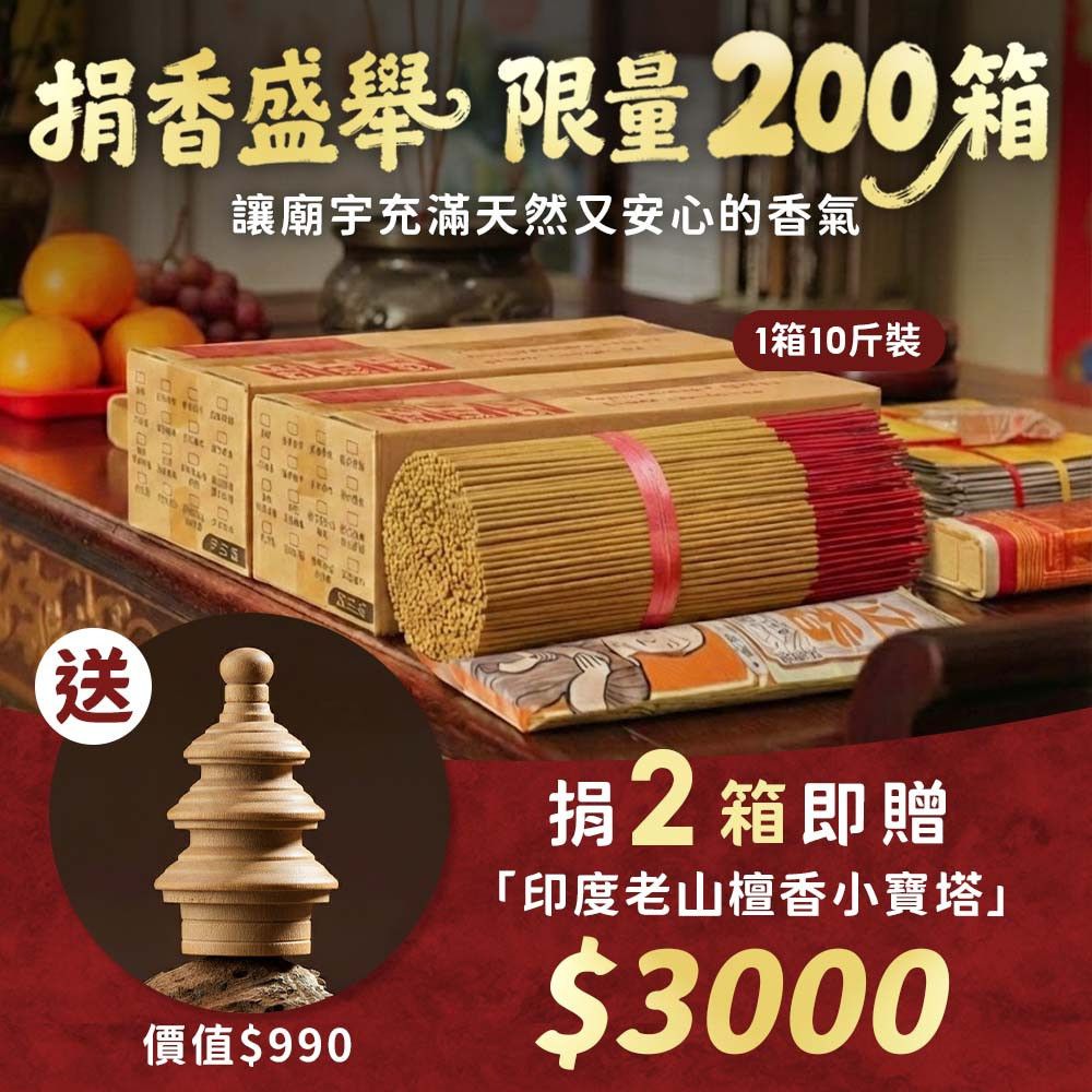 捐香盛舉,捐2箱贈『印度老山檀香小寶塔』,原木香