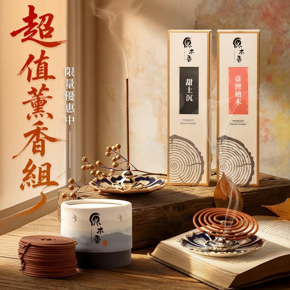 【套組】海洋藍彩香插 +台灣檜木臥香(200克/約260柱) -已售完