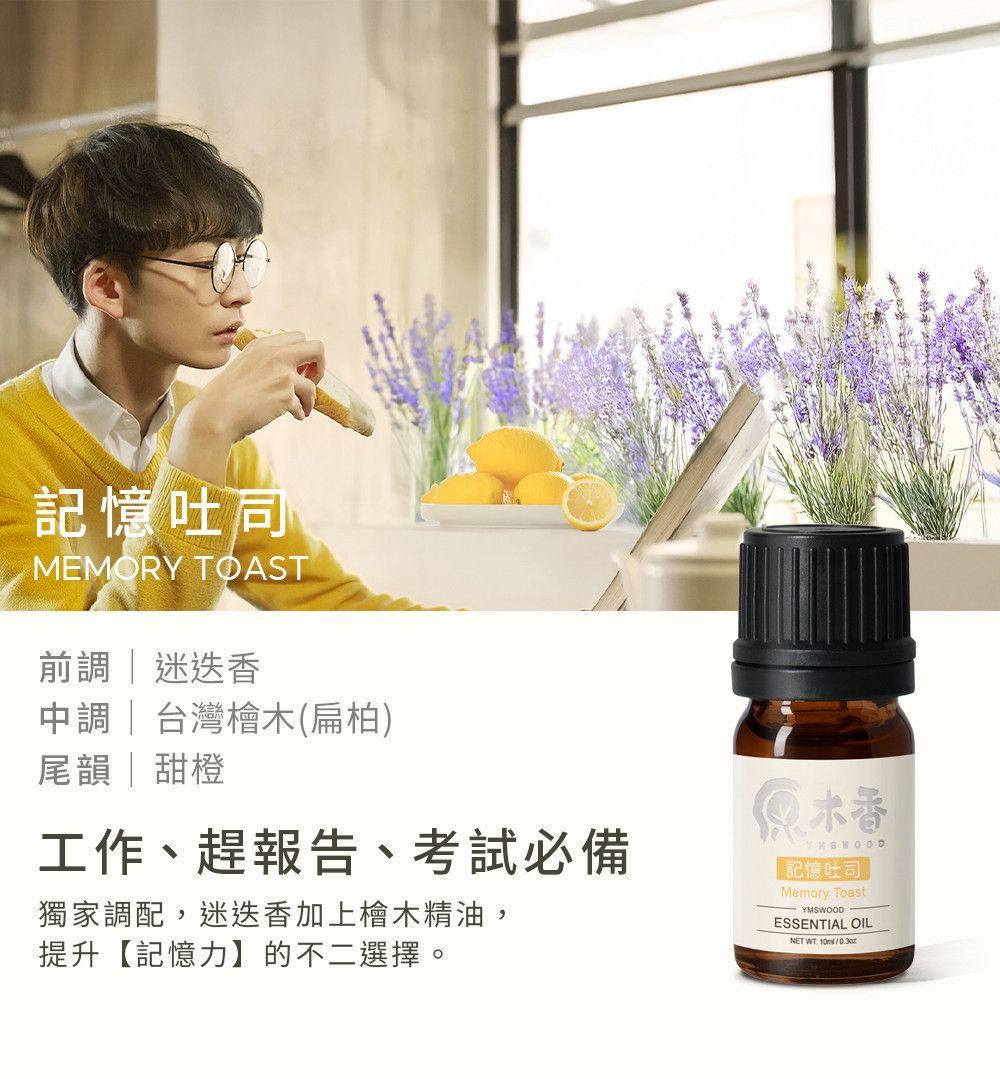 清新檸香與草本融合,適合閱讀、學習、工作時使用。