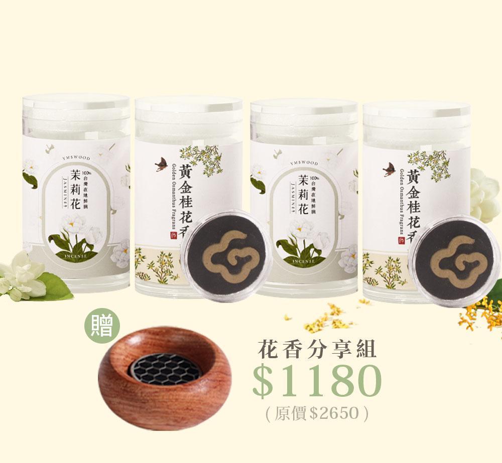 .花香分享組(茉莉2罐+桂花2罐贈花梨木香爐)