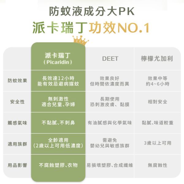 高效配方:22%派卡瑞丁成分,驅蚊長達12小時