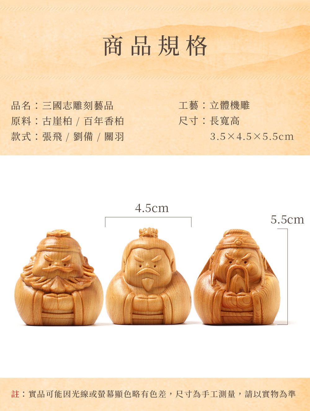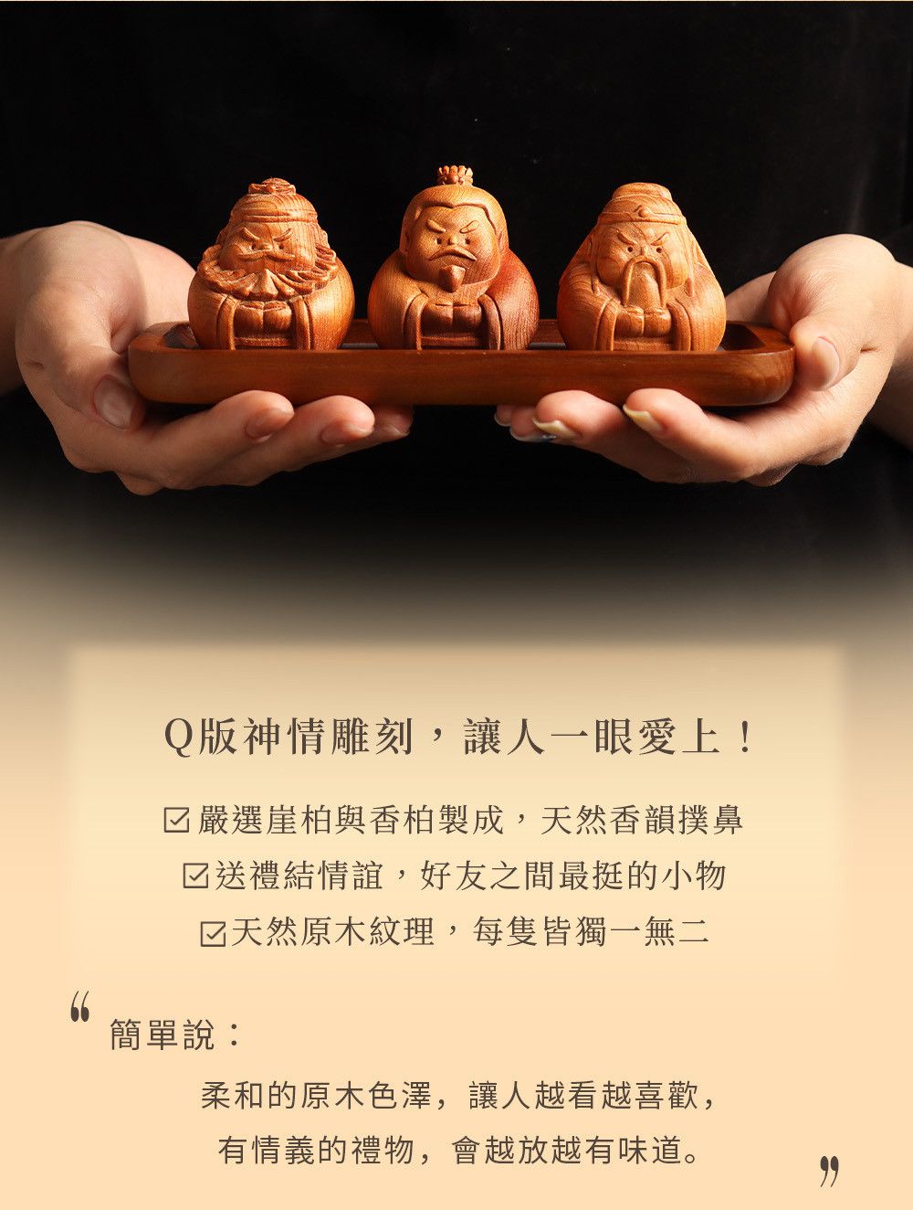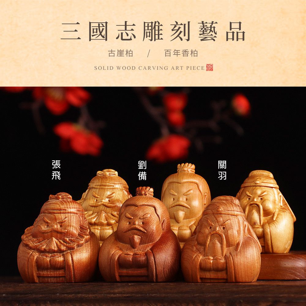 原木香 百年香柏 古崖柏 雕刻藝品 三國志 劉備 張飛 關羽 Q版造型 桃園三結義 避邪 手把件 原木藝品 桌面小物 擺飾 擺件 可愛藝品 送禮