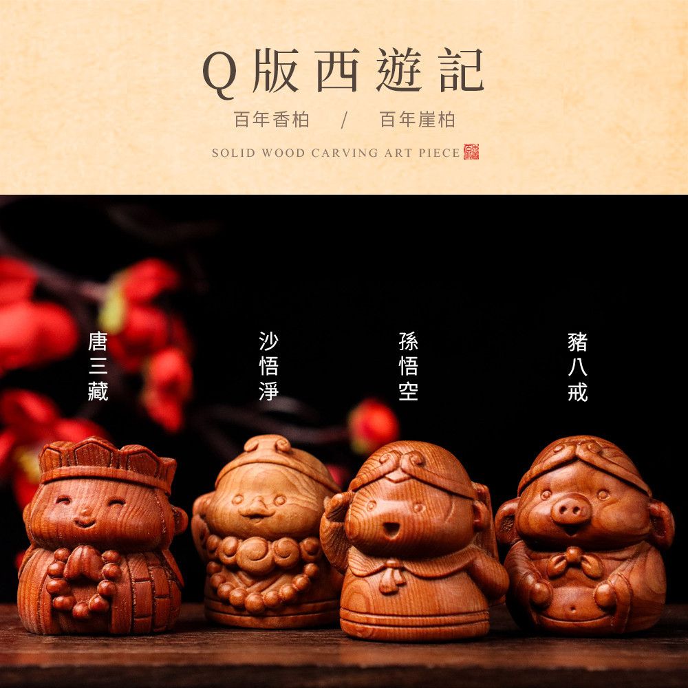 百年崖柏,崖柏,古崖柏,香柏,百年香柏,龍柏,雕刻藝品,西遊記,西遊,唐三藏,唐僧,孫悟空,豬八戒,沙悟淨,擺件,桌面小物,手把件,原木藝品