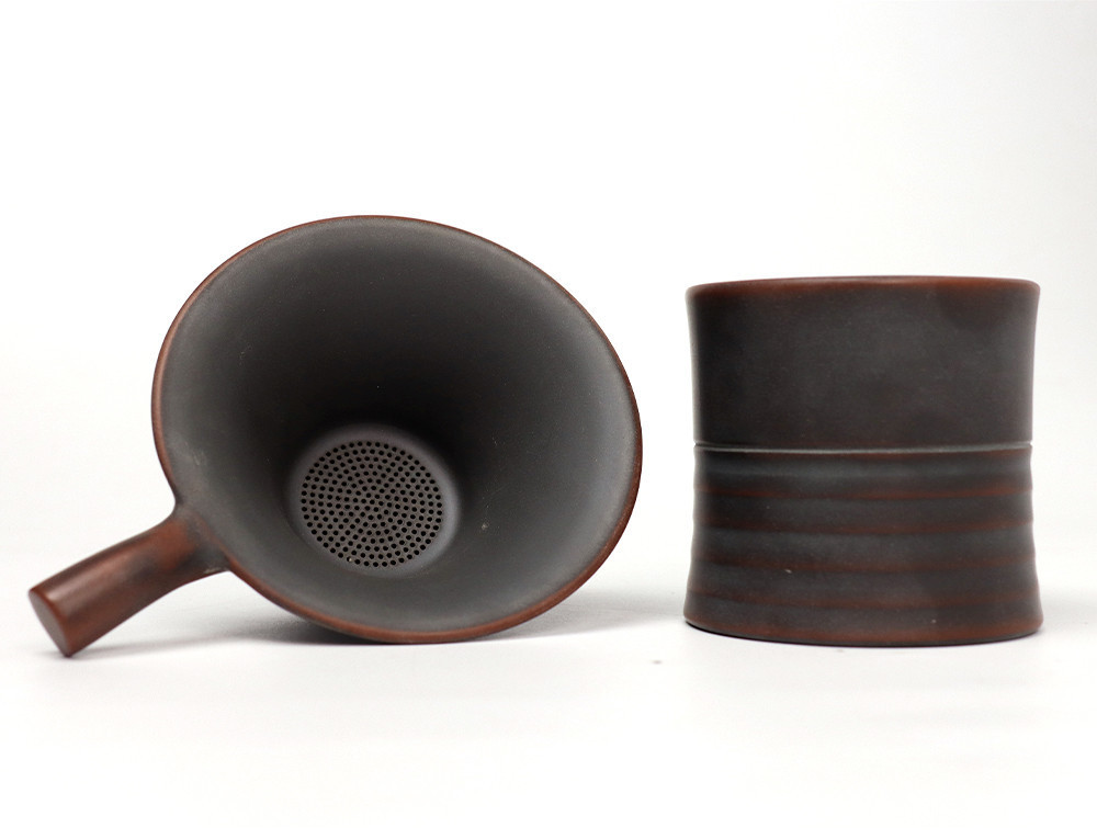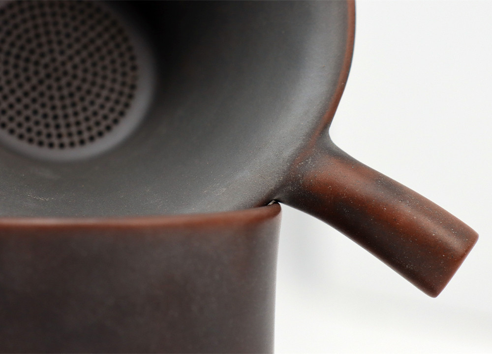 杯身與濾漏皆採用坭興陶原礦製成,表面帶霧面溫潤質感,
