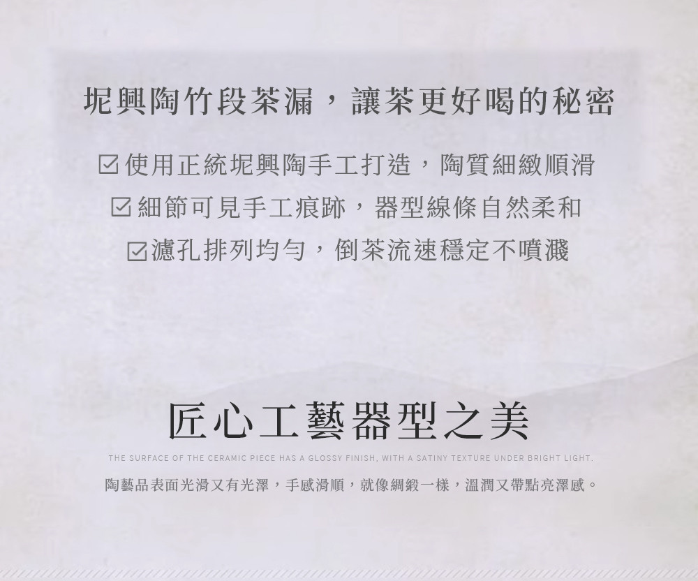 坭興陶竹段茶漏的迷人之處,來自它的純手工匠心製作。