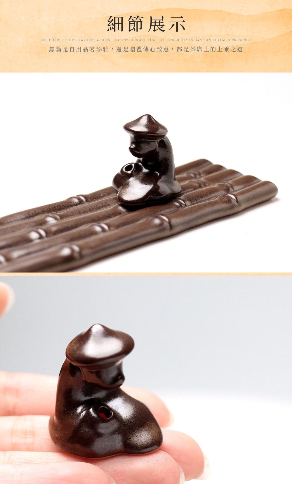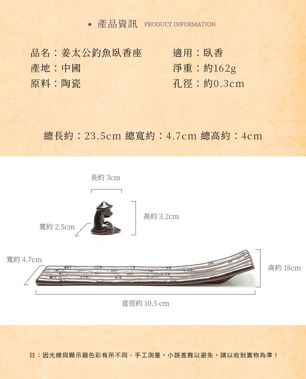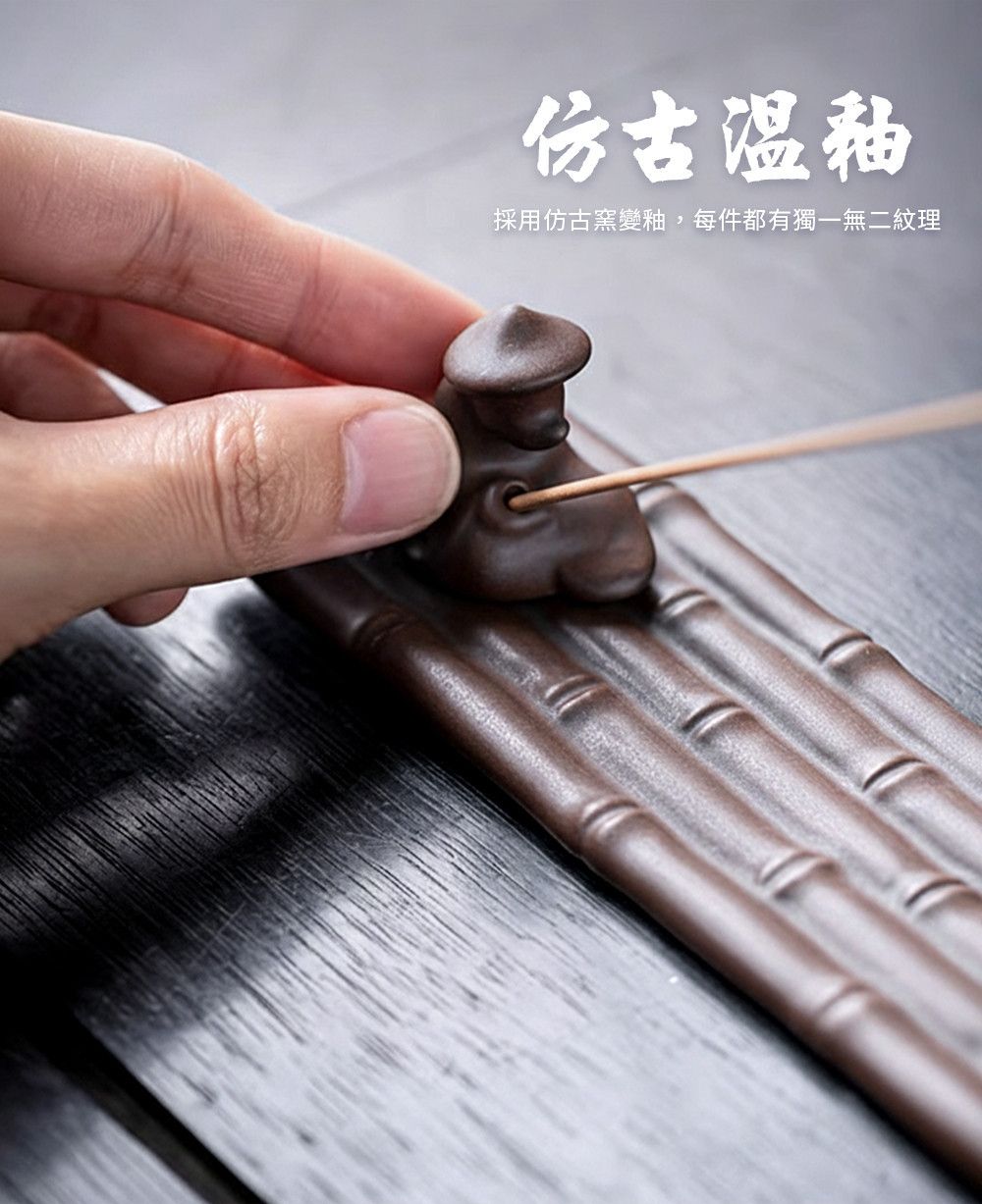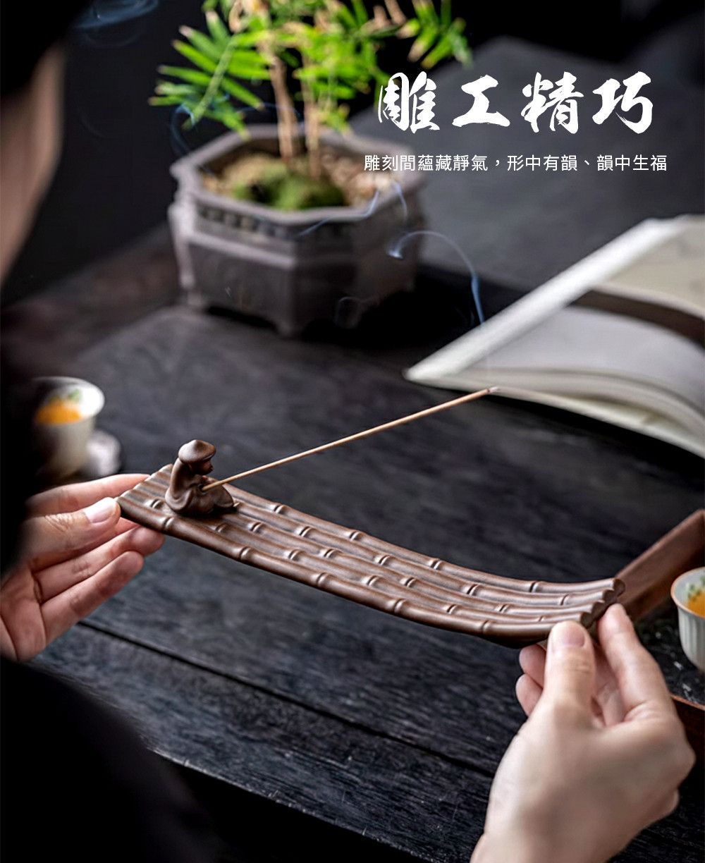原木香 姜太公釣魚臥香座 精美仿古窯燒 線香座 獨一無二 縣香盒 茶席 擺飾 風水 居家裝飾 線香 臥香 招財 淨化磁場 除穢 保平安