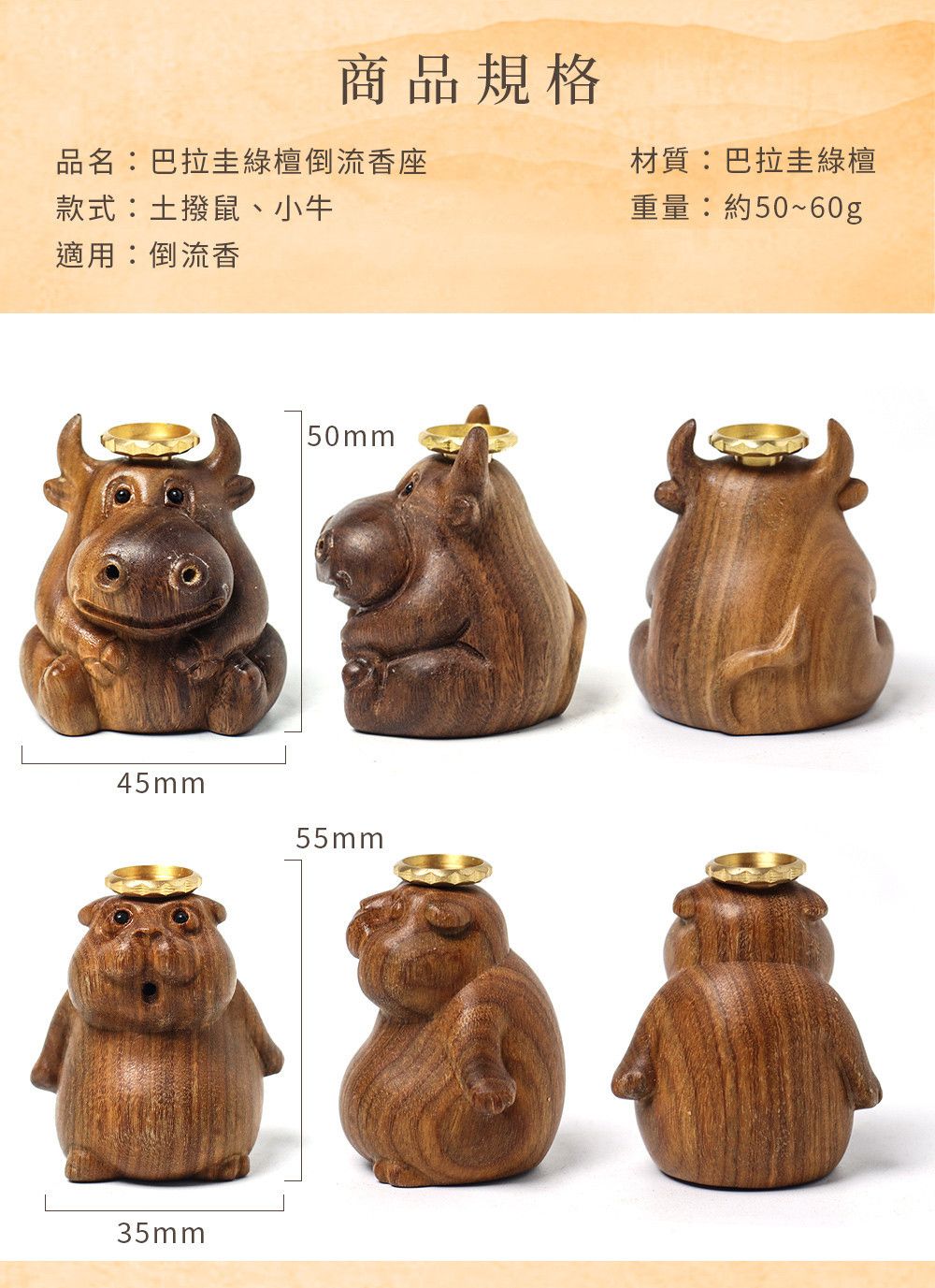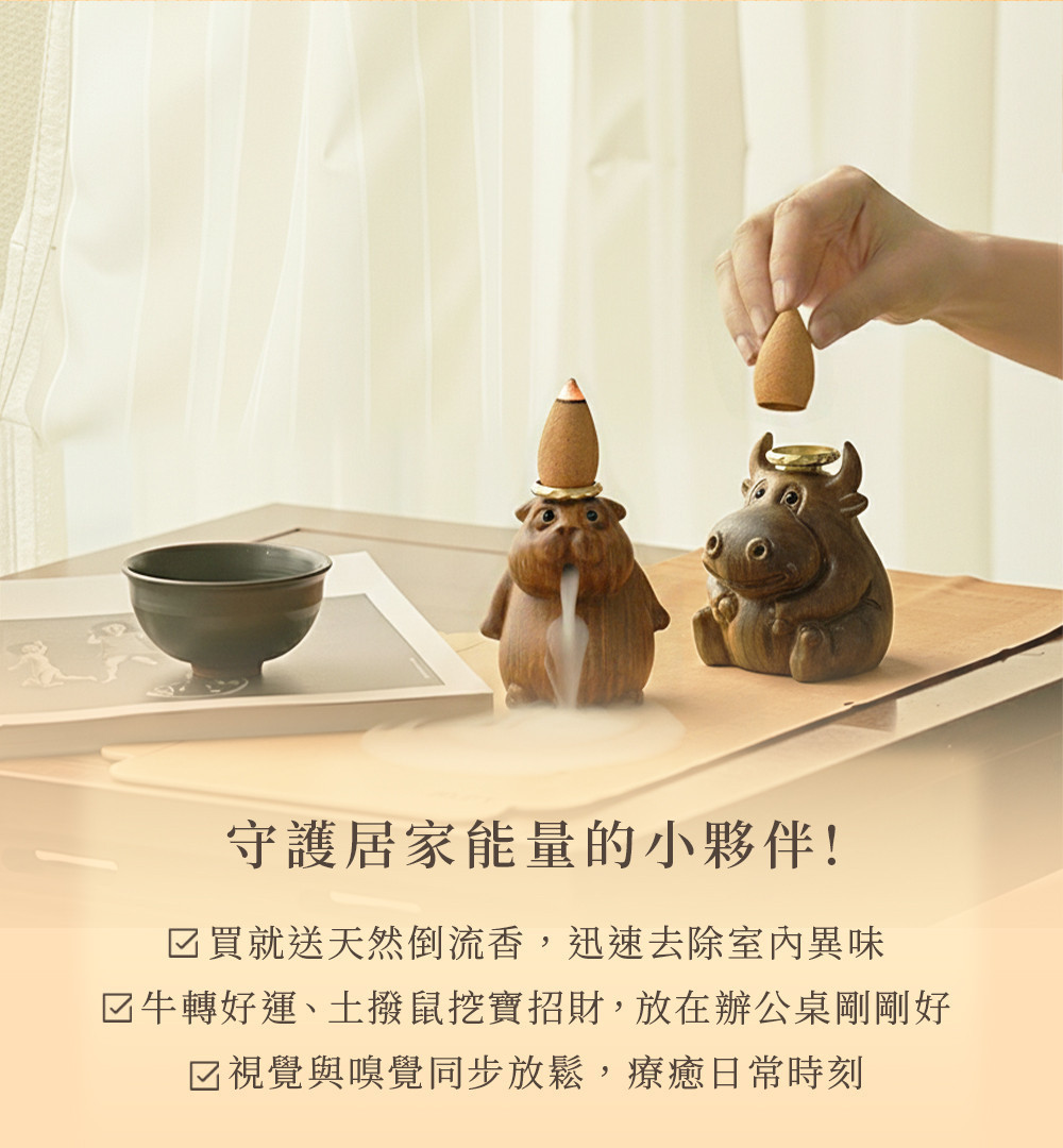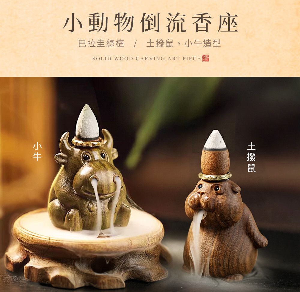 原木香 巴拉圭綠檀倒流香座 小動物倒流香座 小牛 土撥鼠 倒流香 香柏 古崖柏 綠檀 檀香 降真 肖楠 香座 香具 茶道 淨化 好人緣 招財 轉運 守財 除障