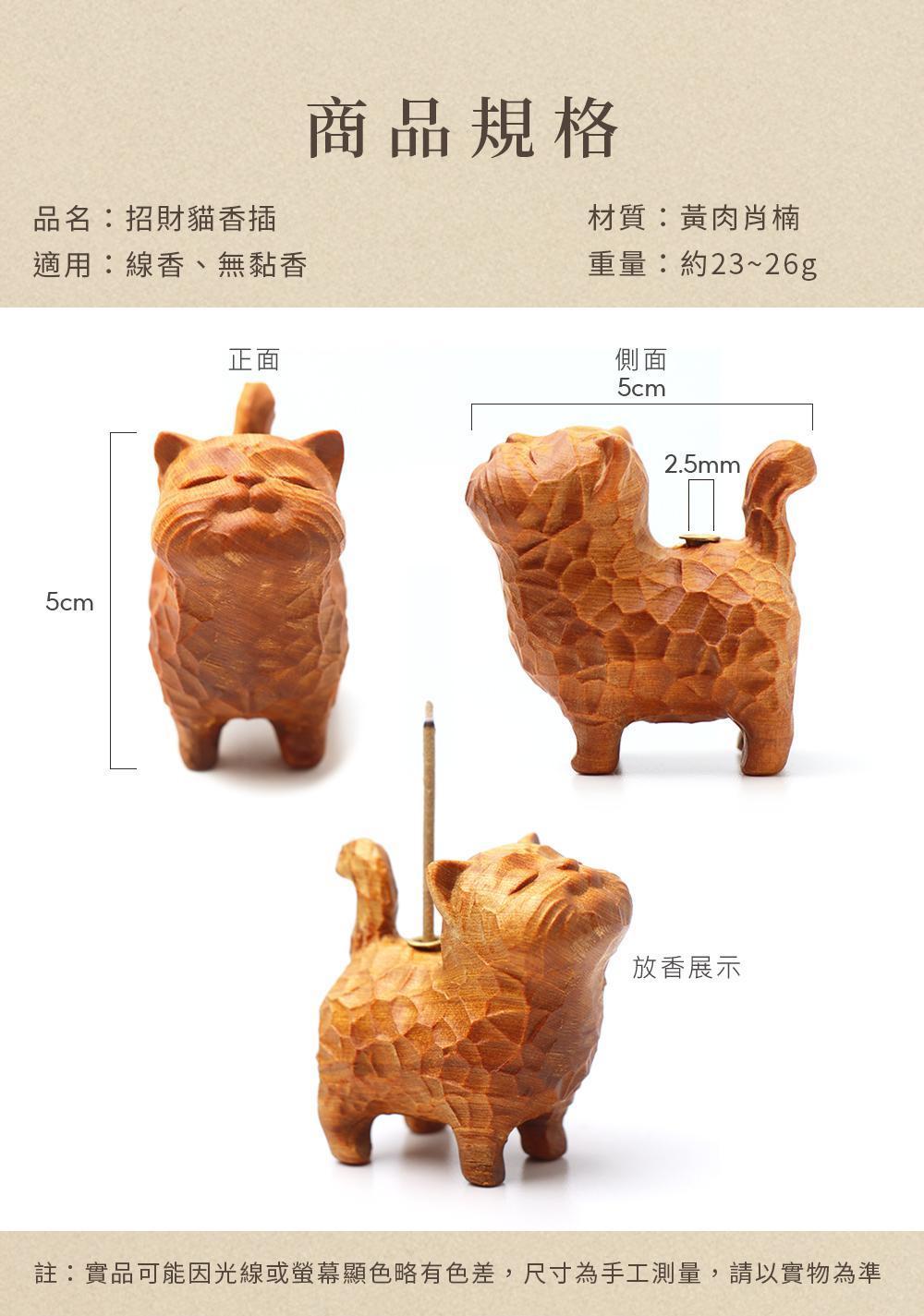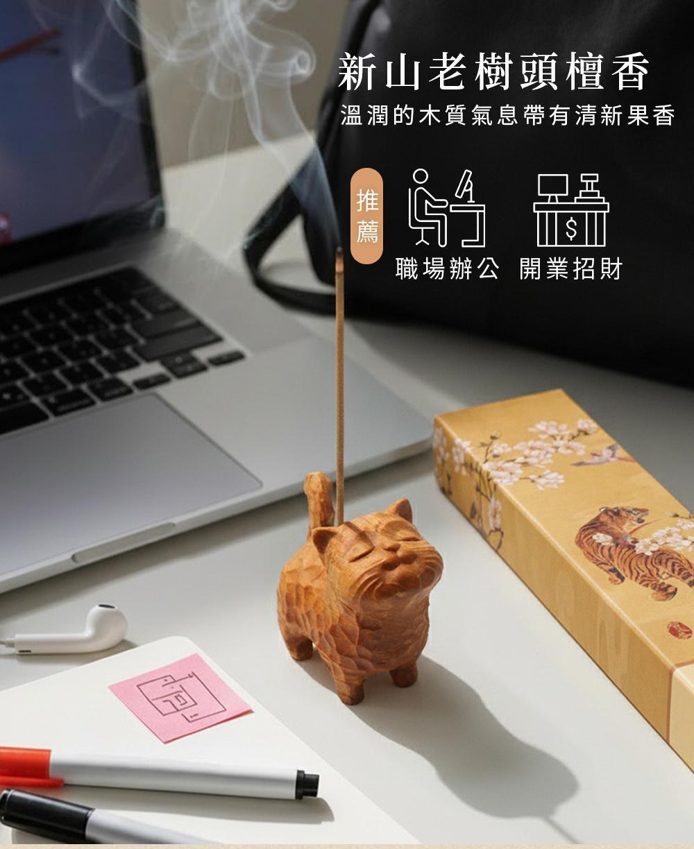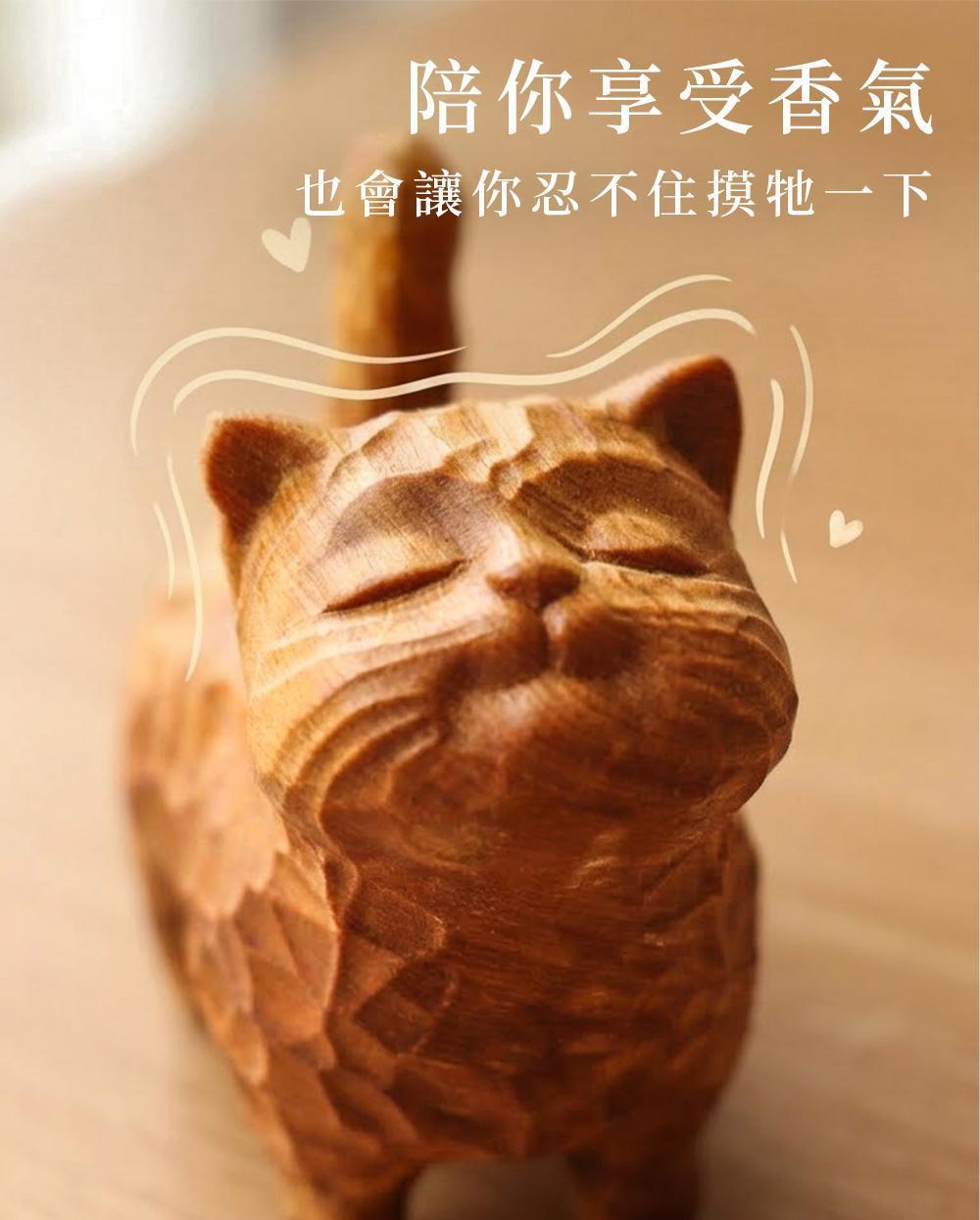 原木香【限量300組】招財貓香插 慵懶薰香組 貓咪 小貓 黃肉肖楠 Q版造型 套組 無黏香 線香 臥香 野生安汶沉香 新山老樹頭檀香 晚風茉莉 茉莉香 秘魯聖木 桌面小物 擺設 原木公仔 藝品 淨化 磁場 守財 招財 好人緣