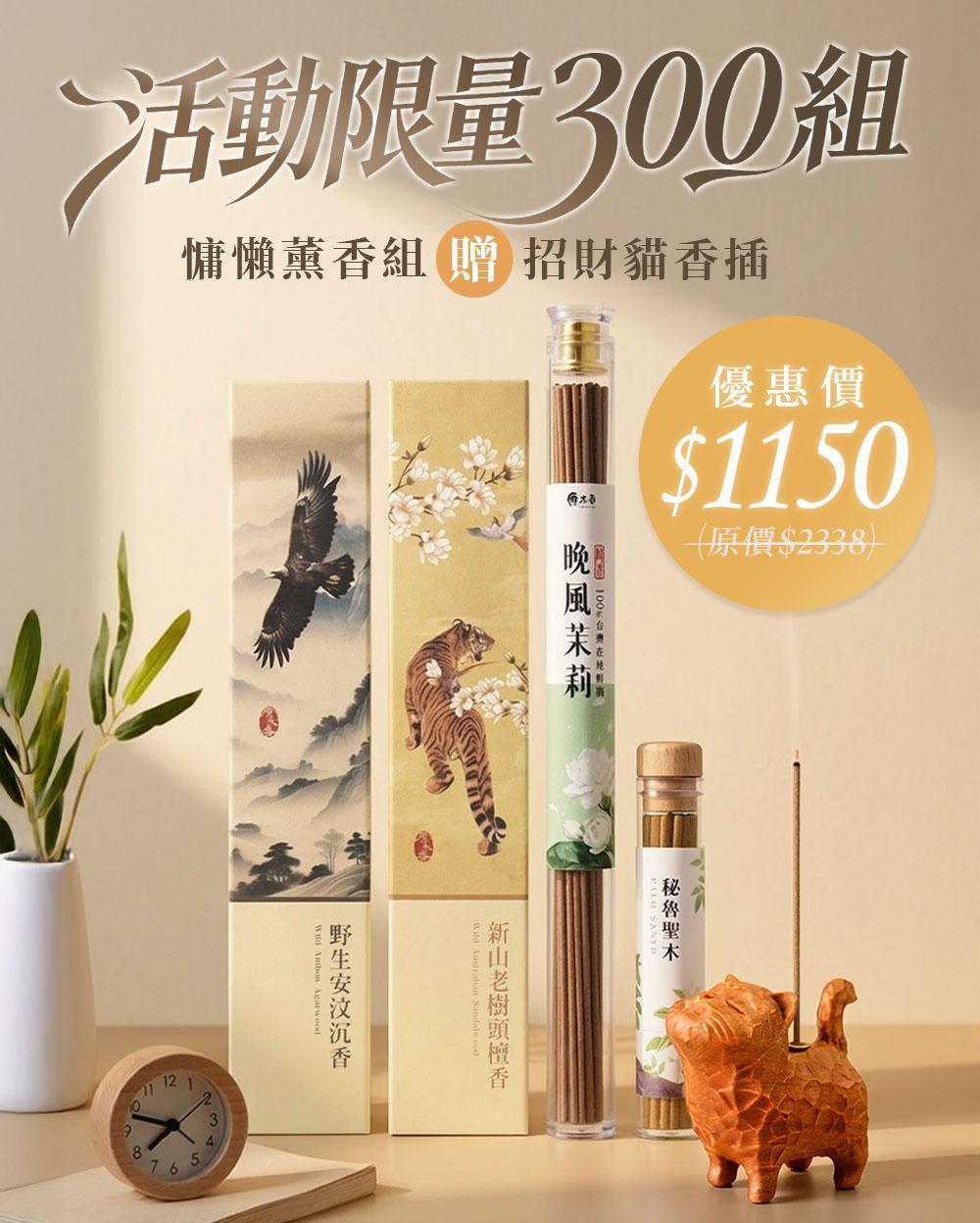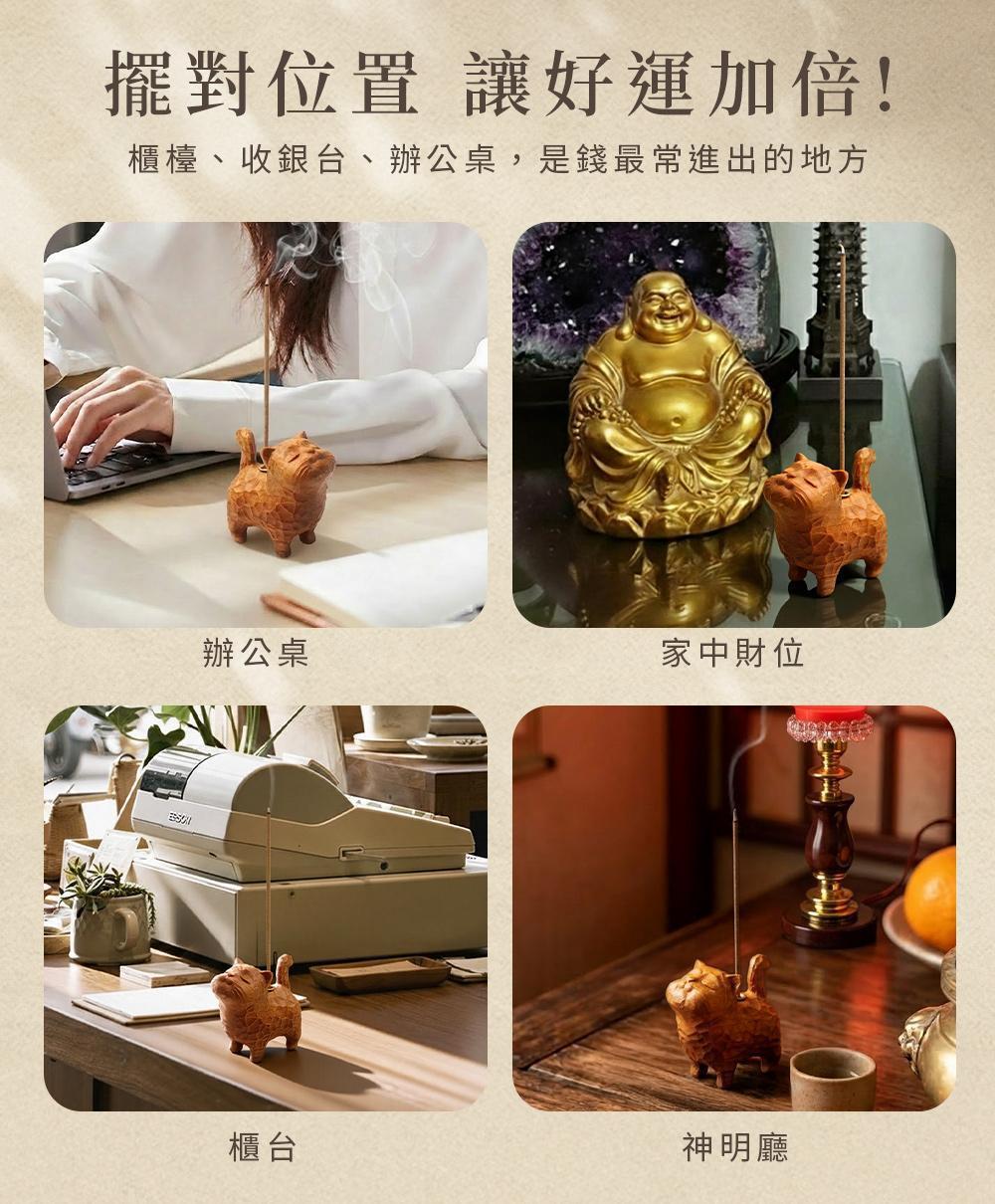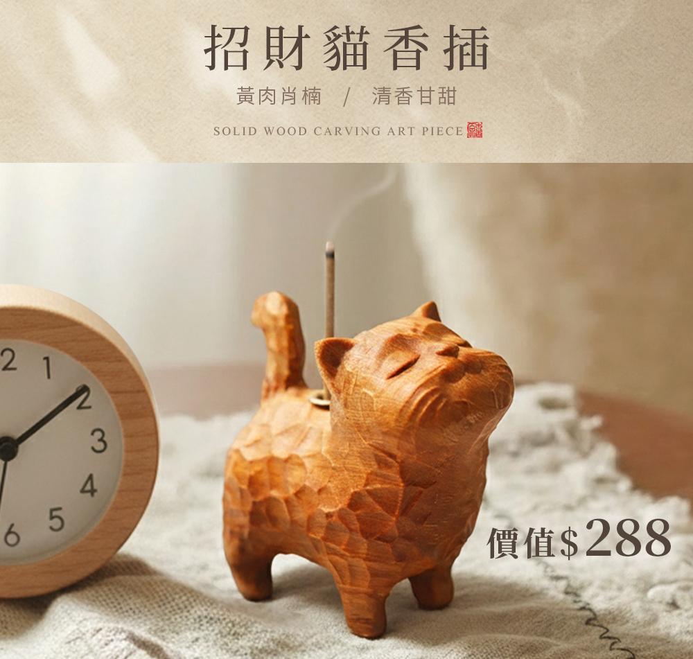 原木香【限量300組】招財貓香插 慵懶薰香組 貓咪 小貓 黃肉肖楠 Q版造型 套組 無黏香 線香 臥香 野生安汶沉香 新山老樹頭檀香 晚風茉莉 茉莉香 秘魯聖木 桌面小物 擺設 原木公仔 藝品 淨化 磁場 守財 招財 好人緣