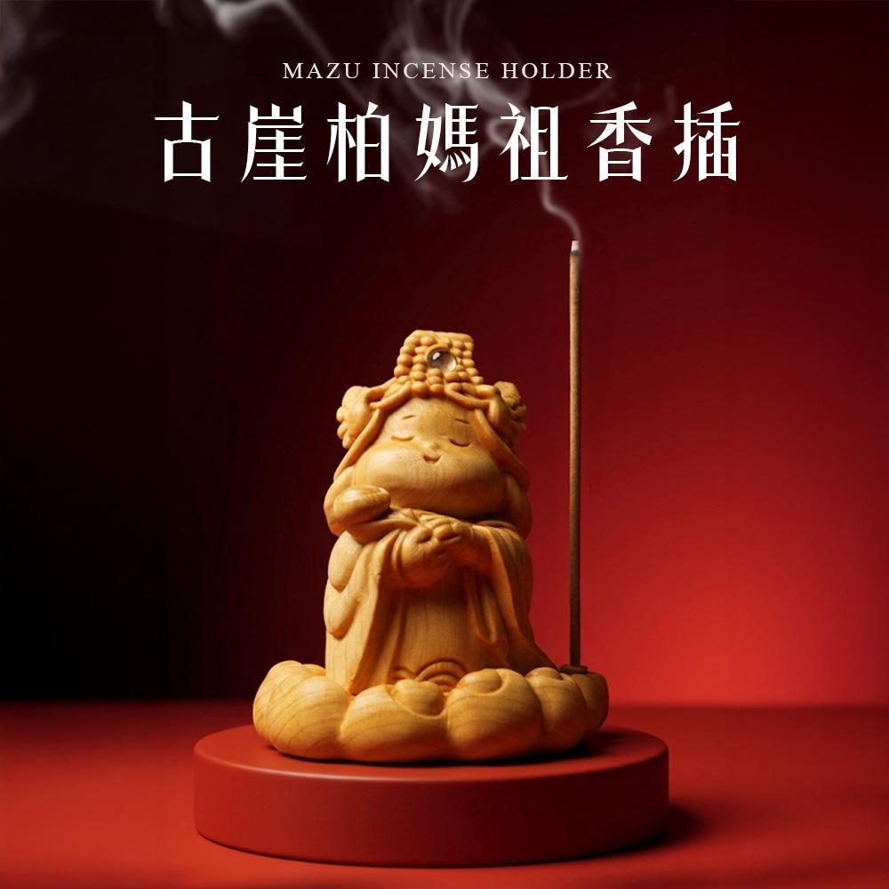 原木香 【媽祖活動】 百年崖柏媽祖香插 海上媽祖 古崖柏 香插 線香座 雕刻藝品 媽祖藝品 Q版造型 避邪 保平安 手把件 原木藝品 桌面小物 擺飾 擺件 繞境 結緣