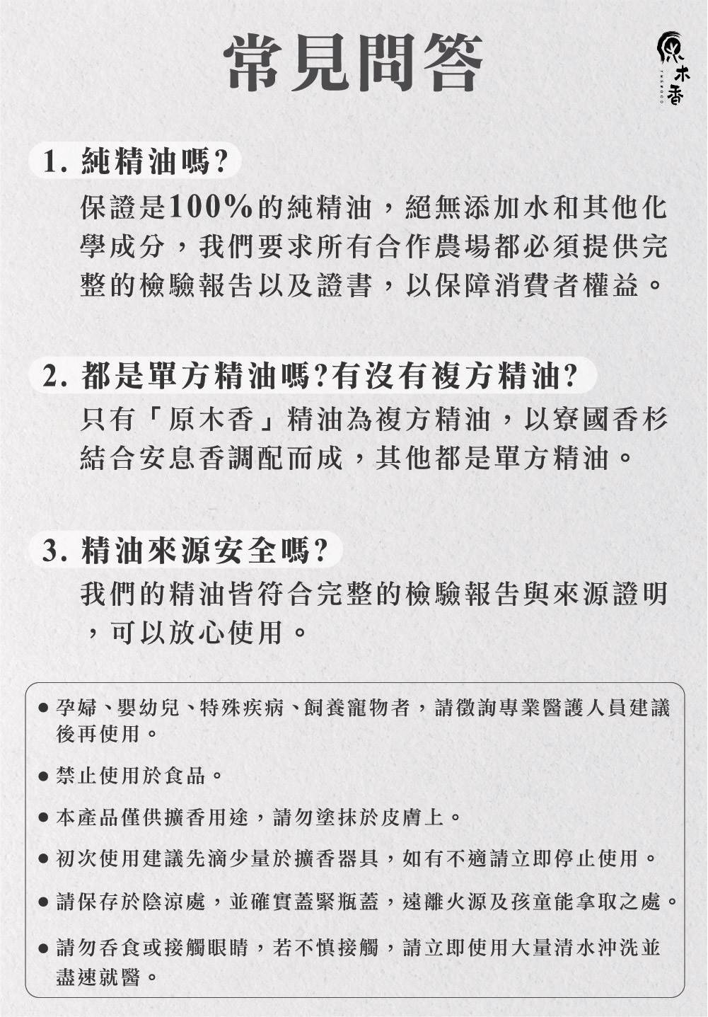 - 沒用過精油的朋友,也沒特殊偏好的朋友,強烈推薦 原木香招牌精油+擴香機,保證你聞一聞精神百倍,吸一吸神清氣爽。